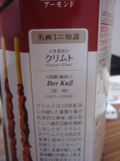 Da wir von Klimt gesprochen haben, hier ein Aufdruck auf einer Schachtel Pocky (Schokolade sticks)