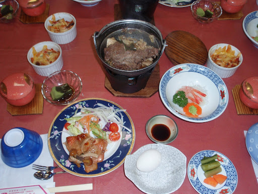 Wie dem auch sei: Während wir nun nach dem Essen die Rechnung entgegengenahmen, haben sich hinter mir unbemerkt (Japaner können das) alle Kellnerinnen im Halbkreis aufgestellt, und als ich den Fuß auf die erste Stufe der Stiege Richtung Ausgang gesetzt habe, haben alle gleichzeitig, ganz laut (mit einem breiten Grinsen im Gesicht) "Kommen Sie bitte wieder!" gerufen, und sie waren amüsiert ob meines überraschten Gesichtsausdruck.