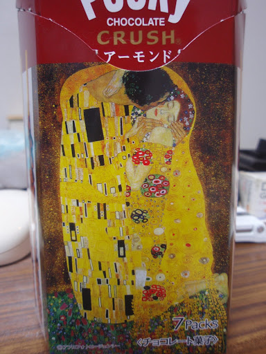 Da wir von Klimt gesprochen haben, hier ein Aufdruck auf einer Schachtel Pocky (Schokolade sticks)