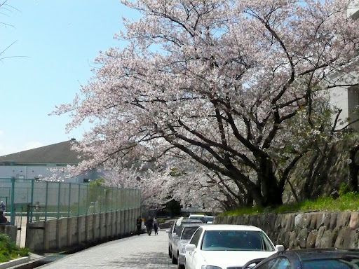Leider mußte ich 2 Wochen zu früh abreisen, so konnte ich am Hanami nicht mehr teilnehmen und das obwohl der Park meines Herrschaftssitzes in Himeji als einer der schönsten Orte für Hanami in der ganzen Umgebung, wahrscheinlich sogar in der ganzen Präfektur, gilt. Daher habe ich leider keine Photos aber eine Freundin (danke Naomi!) hat für mich ein paar von den Bäumen auf dem Campus der Universität geschossen. Obwohl es tags zuvor stark geregnet und leider viele Blüten deswegen schon abgefallen waren, sind die Sakura immer noch sehr schön.